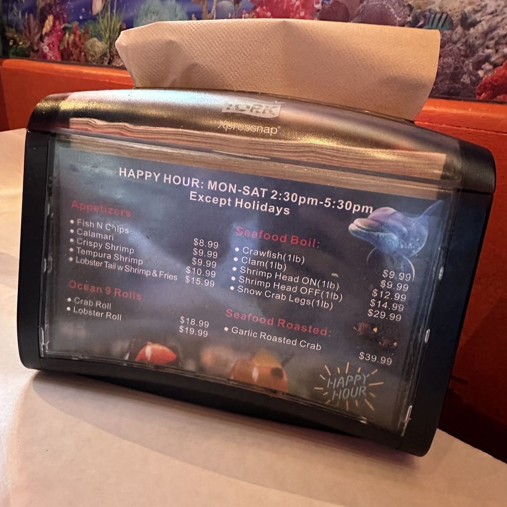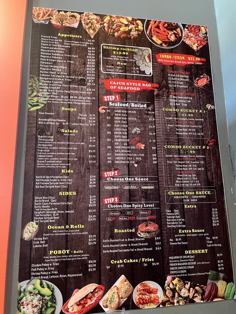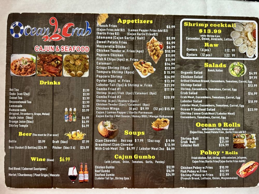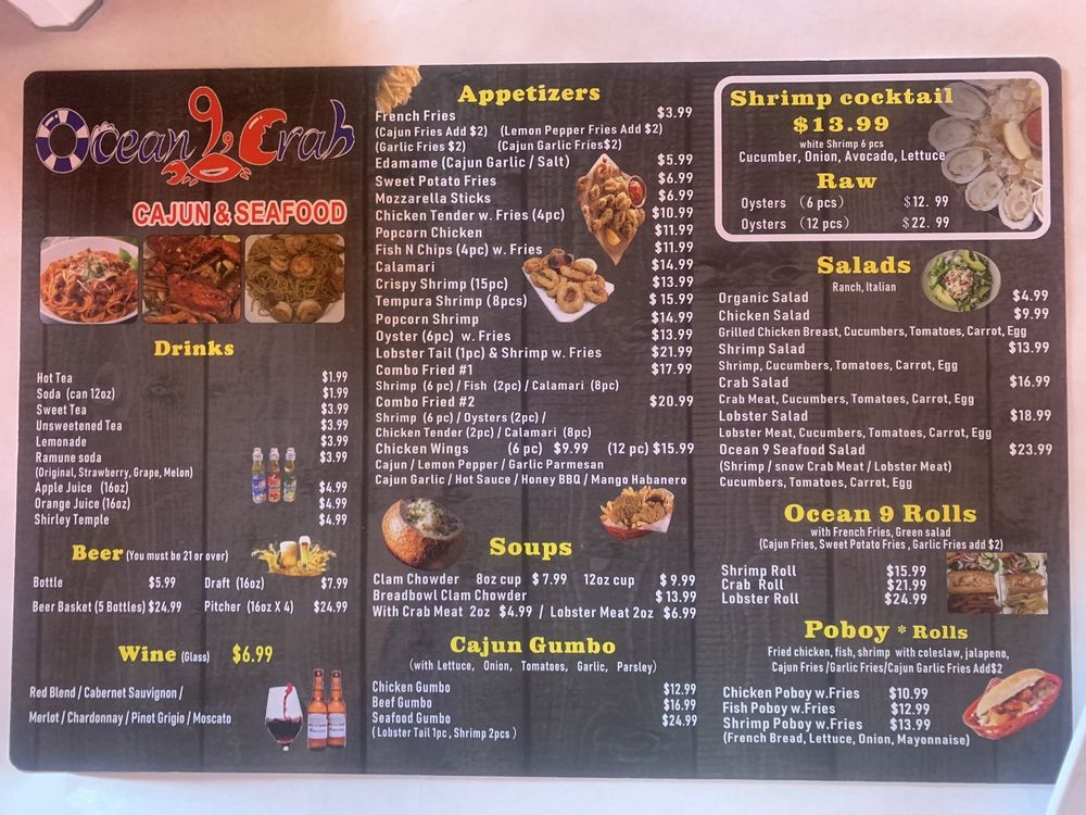 Ocean 9 Crab in Antioch, CA is a Cajun/Creole seafood spot known for its flavorful dishes and great service. The menu includes a variety of appetizers like Calamari and Crispy Shrimp, as well as hearty soups like Clam Chowder with Crab Meat. Fresh salads like the Ocean 9 Seafood Salad are also available. Customers have praised the mild lemon pepper sauce and the seafood boil options, with one reviewer noting the tasty spices used in the dishes. While some felt the flavors could be stronger, the overall ambiance and service received high marks. With a focus on quality seafood and a vibrant atmosphere, Ocean 9 Crab is a great choice for those craving a satisfying seafood meal.
